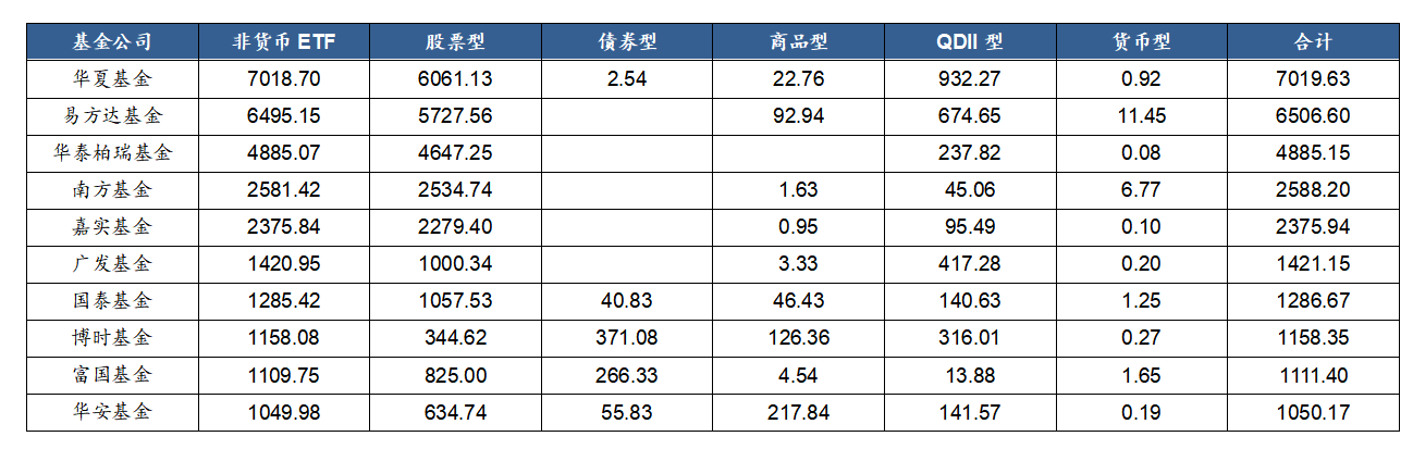 表2:基金公司ETF規(guī)模統(tǒng)計(jì)(億元)