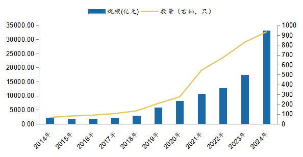 圖4:境內(nèi)ETF產(chǎn)品規(guī)模數(shù)量變動(dòng)統(tǒng)計(jì)