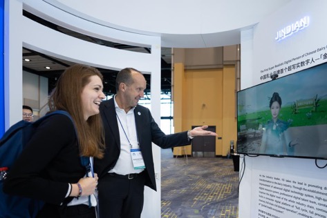 國際乳聯(lián)主席PiercristianoBrazzale與金典品牌數(shù)字代言人金婰互動