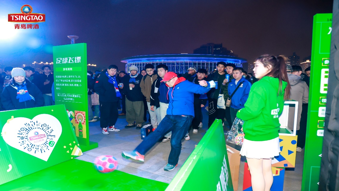 在比賽開始前,球迷們已經(jīng)接收到本次比賽快樂能量,齊聚青島啤酒中超嘉年華現(xiàn)場。在這里不僅可以定制“球迷說”雕刻罐,在“領喊臺”合影分享互動,還能在“球迷訓練營”過把球星癮,再加上青啤足球?qū)氊惖奈璧秆堇[,直接把賽場變成了“啤酒嘉年華”。