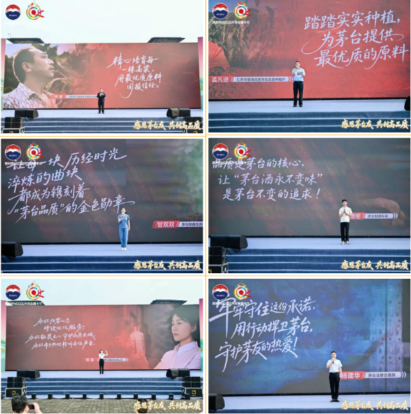 “精心培育每一株高粱,用最優(yōu)質(zhì)的原料回報信任”“踏踏實實種植,為茅臺提供最優(yōu)質(zhì)的原料”“讓每一塊歷經(jīng)時光淬煉的曲塊,都成為鐫刻著‘茅臺品質(zhì)’的金色勛章”“讓茅臺酒永不變味,是我們不變的追求”“永懷歸零心態(tài)持續(xù)優(yōu)化服務(wù),永懷赤子熱忱聆聽茅友聲音”“用行動捍衛(wèi)茅臺,守護茅友的熱愛”……歡迎儀式上,精心設(shè)置“茅臺人有話對您說”環(huán)節(jié),高粱種植戶代表,制曲、制酒、營銷、維權(quán)員工代表依次登臺,用質(zhì)樸話語傳遞對品質(zhì)的堅守與對茅友的感恩。