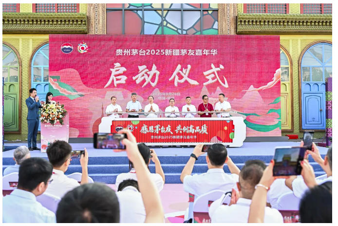 隨后,孫勁峰、張德芹等領(lǐng)導(dǎo)嘉賓共同上臺(tái)啟動(dòng)裝置,也正式揭開了貴州茅臺(tái)2025新疆茅友嘉年華序幕。