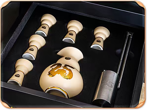 茅臺(tái)王子酒(25周年紀(jì)念)配備了設(shè)計(jì)精美的酒具。這些酒具以匠心打造,其中葫蘆分酒器,同時(shí)也是茶具中的公道杯,酒或茶倒出來(lái)之時(shí),寓意著“福到了”;乾坤杯,正放為茶杯(象征“坤”,地之沉穩(wěn)),倒置為酒杯(象征“乾”,天之靈動(dòng)),一器雙用,體現(xiàn)“陰陽(yáng)相生”的哲學(xué)思想。品茗靜心、把酒言歡,皆能隨心切換,在器皿流轉(zhuǎn)間,感受傳統(tǒng)哲學(xué)和東方美學(xué)的當(dāng)代意境。