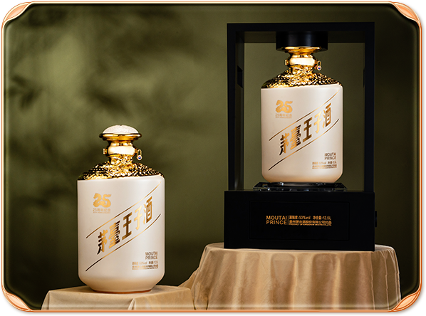 53%vol 12.5L茅臺(tái)王子酒(25周年紀(jì)念),以優(yōu)質(zhì)糯高粱、小麥、水為原料,采用大曲醬香型白酒傳統(tǒng)工藝精心釀造、貯存、勾兌而成,具有醬香典雅、酒體豐滿、醇和協(xié)調(diào)、回味悠長(zhǎng)、空杯留香持久的特點(diǎn)。