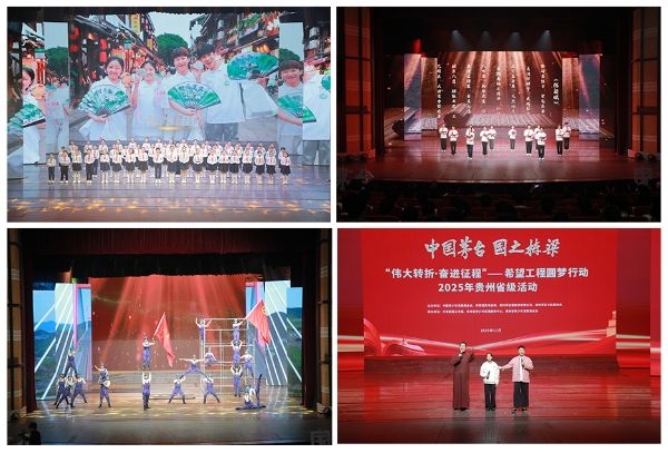 活動(dòng)上,開場(chǎng)節(jié)目《橋見貴州,橋見棟梁》、長(zhǎng)征主題舞臺(tái)劇《赤水騎兵》、“希望工程·陪伴行動(dòng)”項(xiàng)目點(diǎn)學(xué)生與指導(dǎo)老師合作曲藝表演《妙聯(lián)趣對(duì)說希望》、茅臺(tái)受助學(xué)子《棟梁賦》朗誦等輪番演繹,既展現(xiàn)了遵義紅色精神的光輝典范,又展現(xiàn)了茅臺(tái)始終心懷大愛,關(guān)愛青少年成長(zhǎng)的高尚情懷?;顒?dòng)在一曲稚嫩的童聲合唱《又見星河》中圓滿落下帷幕。