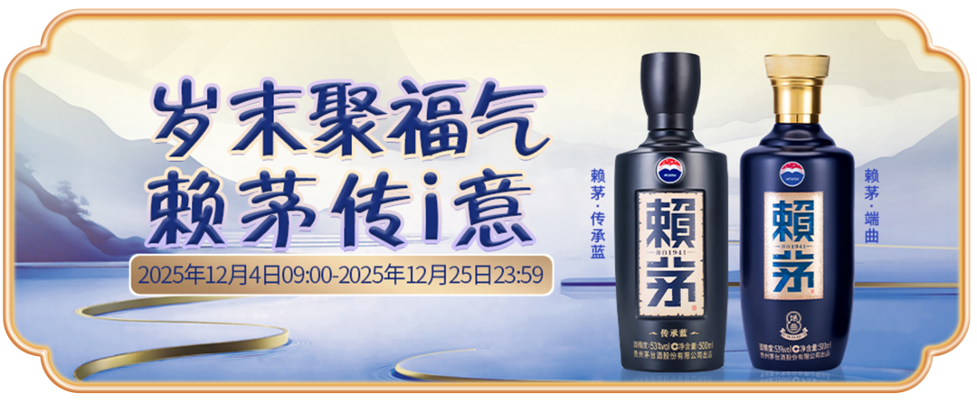 12月4日09:00-12月25日23:59,開啟“歲末聚福氣 賴茅傳i意”活動(dòng)。購53%vol500ml賴茅酒(端曲)(2.0)享258元/瓶活動(dòng)價(jià)(零售價(jià)418元/瓶),購買達(dá)指定數(shù)量可分別獲贈(zèng)賴茅定制SKG頸部按摩儀、特美刻牌保溫杯等禮品。購53%vol500ml賴茅酒(傳承·藍(lán))(2.0)享338元/瓶活動(dòng)價(jià)(零售價(jià)568元/瓶),購買達(dá)指定數(shù)量可分別獲贈(zèng)賴茅定制外交官拉桿箱、賴茅虎年生肖酒等禮品。舉信賴,敬真情。