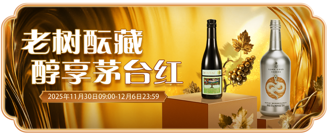 11月30日09:00-12月6日23:59,開啟“老樹醞藏 醇享茅臺(tái)紅”活動(dòng)。小茅將為親們更新“紅酒清單”,上新375ml茅臺(tái)老樹藤樹齡干紅葡萄酒(老樹10),享超值活動(dòng)價(jià)338元/6瓶(零售價(jià)468元/6瓶),購買12瓶再贈(zèng)充電寶禮盒。同時(shí),購買茅臺(tái)葡萄酒乙巳蛇年生肖紀(jì)念酒贈(zèng)餐具禮盒,讓美好加倍,情暖冬日。