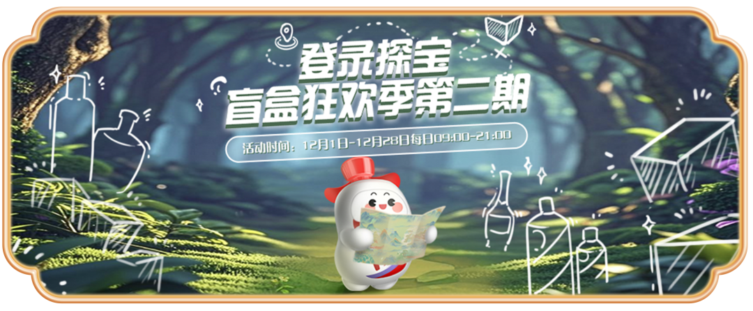 12月1日-12月28日每日09:00-21:00,親們登錄i茅臺(tái)App進(jìn)入“登錄探寶 盲盒狂歡季”活動(dòng)頁面,點(diǎn)擊“鑿開石塊”參與每日簽到抽獎(jiǎng)活動(dòng),連續(xù)7天、28天參與活動(dòng)還能獲額外抽獎(jiǎng)機(jī)會(huì)。有機(jī)會(huì)抽?。猴w天53%vol1L貴州茅臺(tái)酒、53%vol500ml貴州茅臺(tái)酒(乙巳蛇年)、茅臺(tái)醬香系列酒、文創(chuàng)周邊等精選好禮。