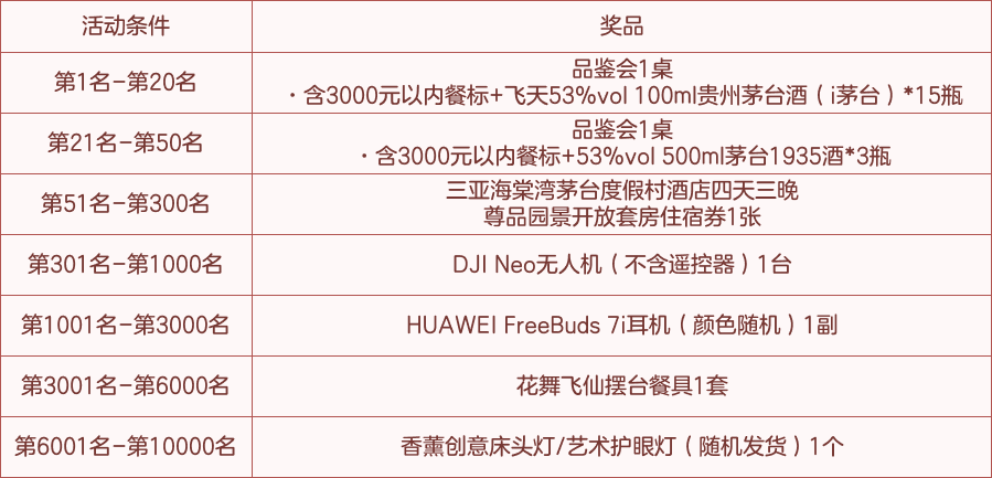接下來,小茅將陸續(xù)發(fā)布所有活動(dòng)的詳細(xì)規(guī)則,請(qǐng)親們持續(xù)關(guān)注“小茅i茅臺(tái)”微信公眾號(hào)、抖音號(hào)及i茅臺(tái)App首頁最新動(dòng)態(tài)。