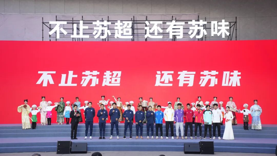 伴隨著開場舞《茉莉芬芳》的演繹,江蘇十三城的風(fēng)味故事一一呈現(xiàn)。啟動儀式現(xiàn)場,“蘇超”球隊的隊員們化身“美食推薦官”,紛紛為家鄉(xiāng)美食打call。江蘇省作家協(xié)會副主席祁智、“蘇超”爆款熱梗代言人叨叨傅也前來助陣,從“蘇超”賽場的激情梗王,變身為“蘇味”的探索者。