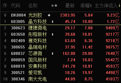 東方財(cái)富光刻膠概念大幅上漲,截至周三收盤,漲幅達(dá)5.84%。板塊44只成份股全線上漲,其中,2只個(gè)股收20CM漲停,17只個(gè)股漲超5%