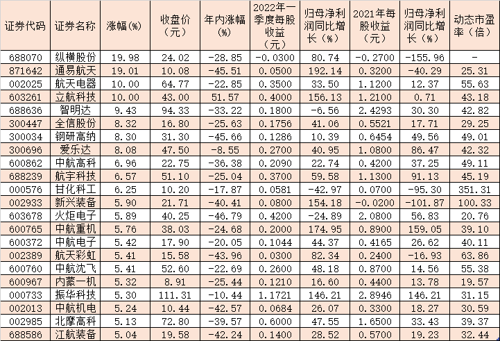 表:5月5日漲幅超5%的國防軍工股一覽