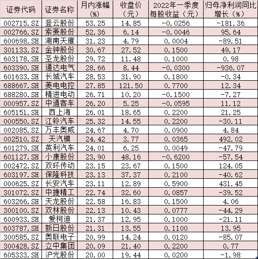 表:5月份以來(lái)漲幅在20%及以上的汽車(chē)股一覽