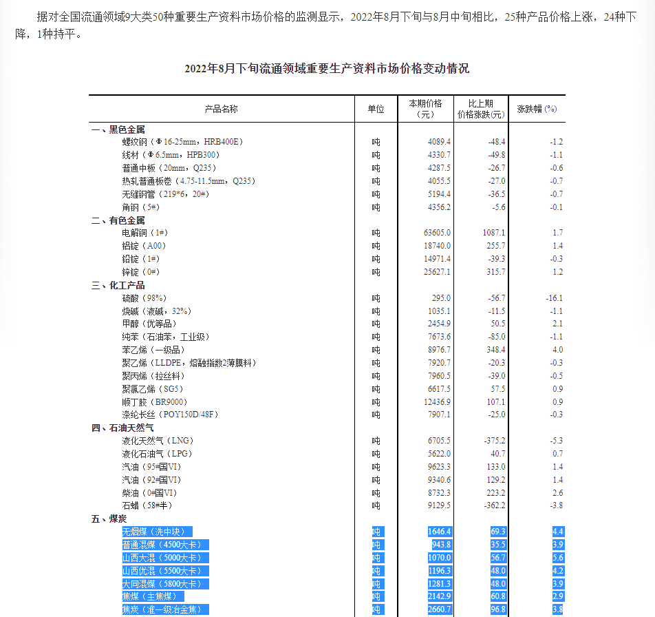 8月下旬煤炭價格普漲,對煤炭板塊上漲形成支撐。