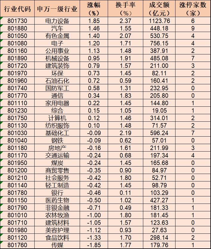表:9月7日申萬一級(jí)行業(yè)指數(shù)表現(xiàn)一覽