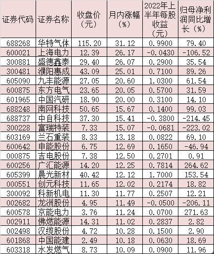 可以看到,今年上半年氫能板塊上市公司業(yè)績改善明顯。同花順數(shù)據(jù)顯示,在174家氫能源板塊上市公司中,有89家公司今年上半年實現(xiàn)歸母凈利潤同比增長,占比逾五成。其中,20家公司報告期內(nèi)歸母凈利潤同比翻番。