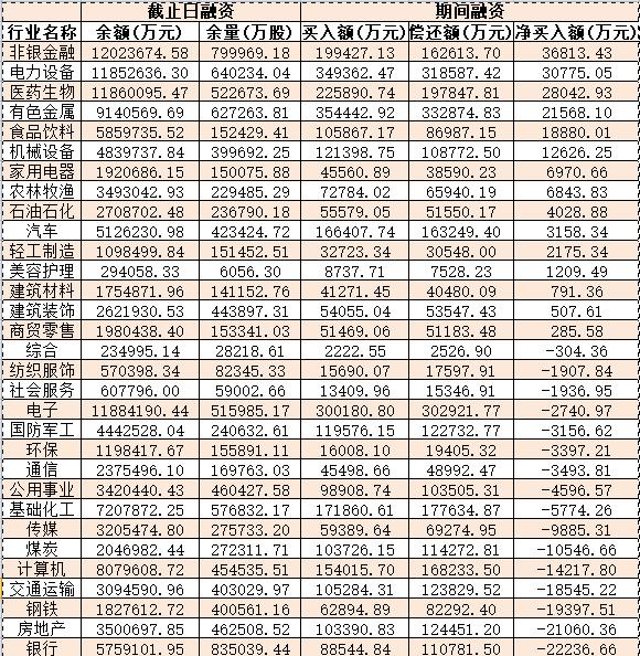 表:9月21日申萬一級(jí)行業(yè)兩融交易情況: