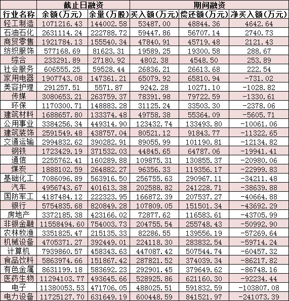 表:10月28日申萬一級行業(yè)兩融交易情況: