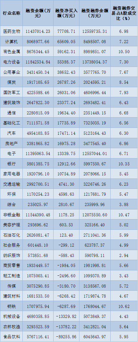 表:11月1日申萬一級行業(yè)兩融交易情況: