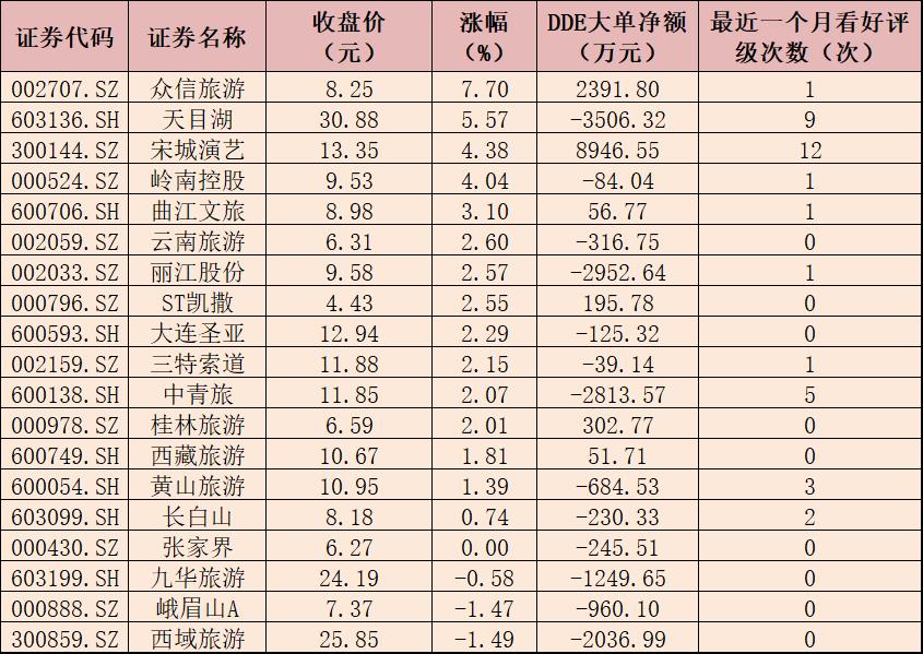 表:11月2日旅游及景區(qū)行業(yè)股股價表現(xiàn)一覽