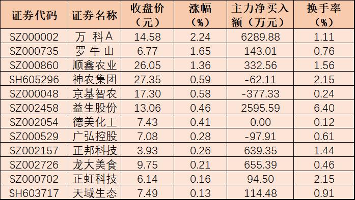 表:11月9日上午實現(xiàn)上漲的豬肉概念股一覽