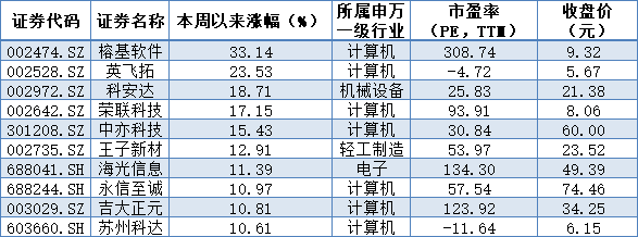 表:信創(chuàng)板塊本周以來漲幅超10%個股一覽
