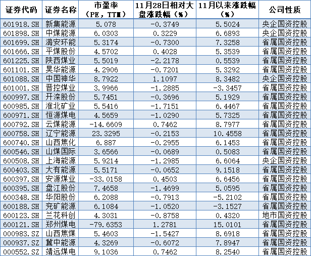 市場表現(xiàn)上看,據(jù)同花順數(shù)據(jù)顯示,煤炭板塊32只概念股,11月以來29只實現(xiàn)區(qū)間上漲,占比逾九成,鄭州煤電、美錦能源、遼寧能源累計漲幅超10%。