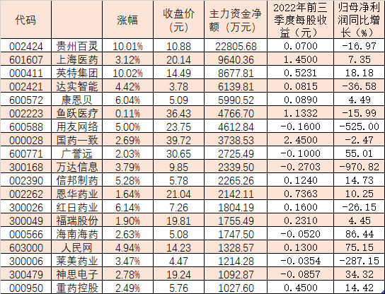 與此同時(shí),互聯(lián)網(wǎng)醫(yī)療概念股也獲市場(chǎng)主力資金的青睞。12月12日,板塊內(nèi)有37只概念股呈現(xiàn)主力資金凈流入態(tài)勢(shì),合計(jì)凈流入額達(dá)9.30億元。其中,貴州百靈獲主力資金凈買入額最多,為22805.68萬元,上海醫(yī)藥、英特集團(tuán)、達(dá)實(shí)智能、康恩貝等4只概念股獲主力資金凈買入額也均超5000萬元。