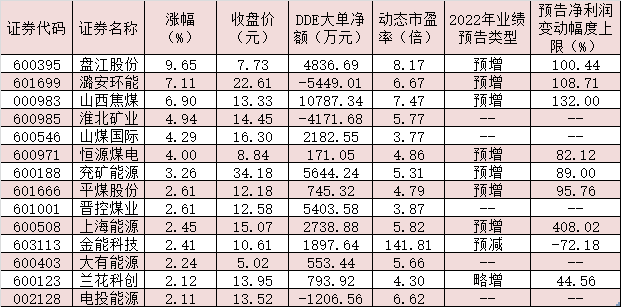 表:2月21日漲幅超2%的煤炭股