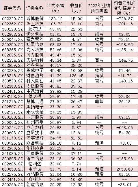 表:年內(nèi)累計(jì)漲幅超30%的數(shù)字經(jīng)濟(jì)概念股