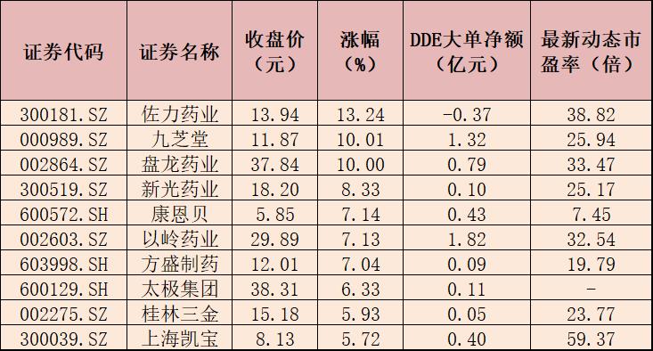 表:3月15日漲幅居前十的中藥股一覽