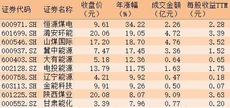 表:煤炭板塊A股年內(nèi)漲幅前十位個(gè)股