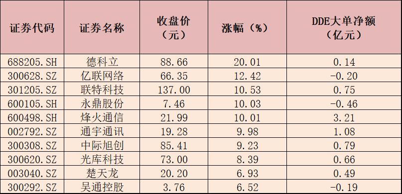 表:4月24日通信行業(yè)漲幅居前十的個股一覽