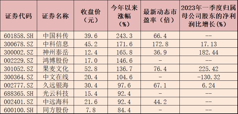 表:今年以來漲幅居前十的數(shù)字經(jīng)濟(jì)概念股一覽