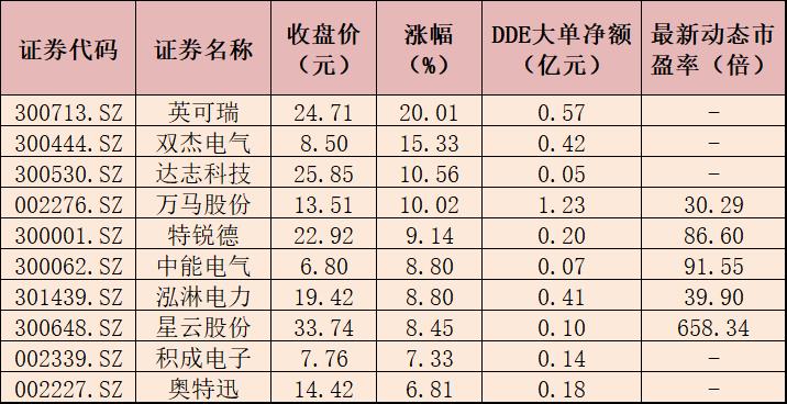 表:5月15日高壓快充板塊內(nèi)漲幅居前十個(gè)股一覽