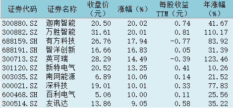 表:今日智能電網(wǎng)板塊內(nèi)漲幅前十個股一覽