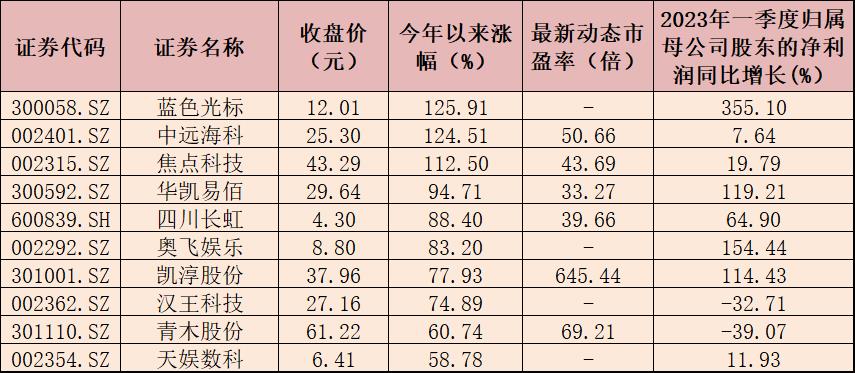 表:今年以來(lái)漲幅居前十的跨境電商概念股一覽