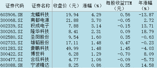 表:今日動(dòng)力電池回收板塊漲幅前十個(gè)股一覽