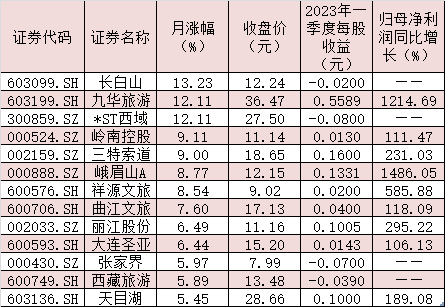 表:月內(nèi)累計漲幅超5%的旅游及景點股