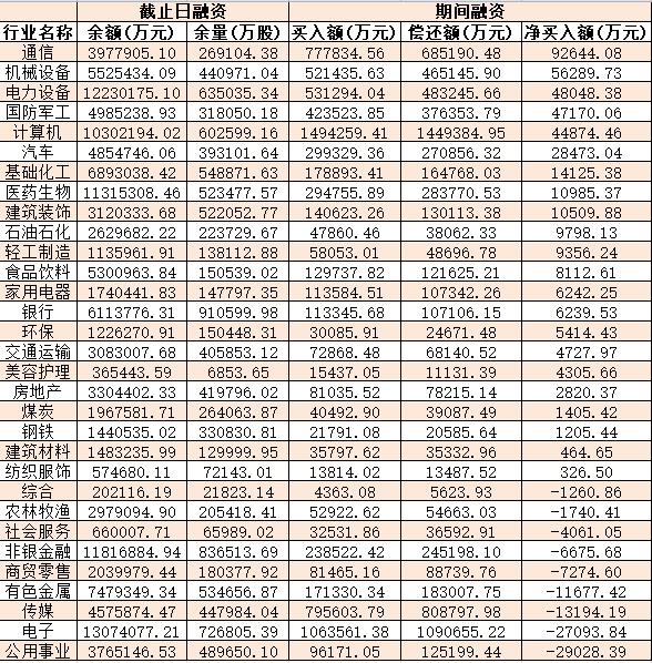 表:6月20日申萬一級行業(yè)兩融交易情況: