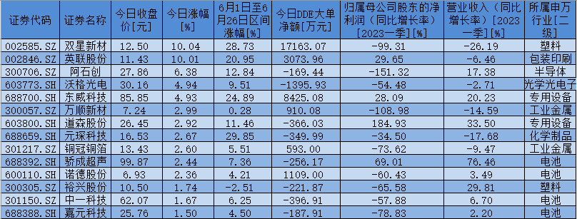 表:今日PET銅箔概念板塊實(shí)現(xiàn)上漲個(gè)股一覽