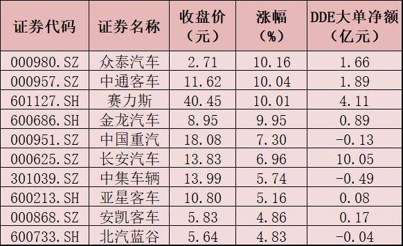 表:7月3日汽車整車板塊漲幅居前10的個股一覽