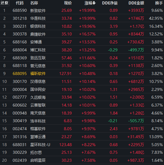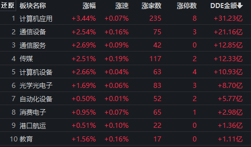 從早盤表現(xiàn)強(qiáng)勢的計(jì)算機(jī)應(yīng)用行業(yè)看,交易中的253只成分股中,有235只上漲,其中,有39只個股漲幅超5%。此外,與計(jì)算機(jī)應(yīng)用相關(guān)的互聯(lián)網(wǎng)概念板塊如數(shù)據(jù)安全、數(shù)據(jù)確權(quán)、華為鯤鵬等也表現(xiàn)活躍,漲幅均超4%。資金方面,有31.23億元大單資金凈流入該行業(yè),居第1位。