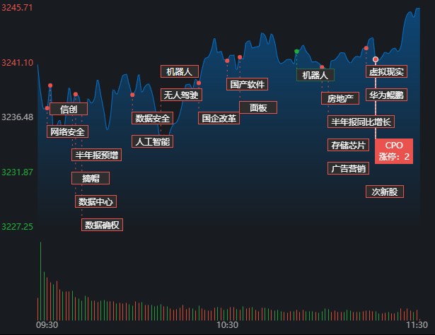 7月14日早盤,A股三大指數(shù)震蕩分化,呈滬強(qiáng)深弱格局。截至上午11:30,上證指數(shù)漲0.29%,報(bào)3245.71點(diǎn),深證成指和創(chuàng)業(yè)板指漲跌幅分別為0.02%和-0.51%;滬深兩市成交額合計(jì)5863.95億元。A股市場有2487只個股上漲,2428只下跌,漲跌停方面,有40只個股漲停,跌停股7只。