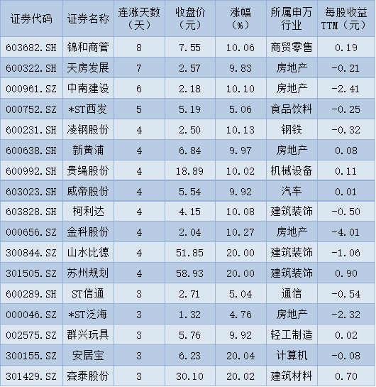 表:連續(xù)上漲3日且今日收盤(pán)漲停股一覽