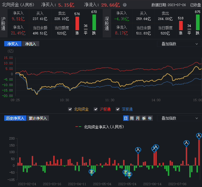7月26日,A股三大指數(shù)窄幅震蕩,向資金凈買(mǎi)入逾5億元。有樂(lè)觀的機(jī)構(gòu)分析人士表示,2023年的市場(chǎng)底部極有可能由2023年6月26日3144點(diǎn)和2023年7月24日3151點(diǎn)共同構(gòu)筑雙底,加上7月24日成交量縮小到6599億元,市場(chǎng)底加上政策底已經(jīng)完美融合。