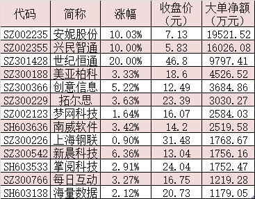 表:8月7日受到千萬(wàn)元以上大單資金追捧的數(shù)據(jù)要素概念股