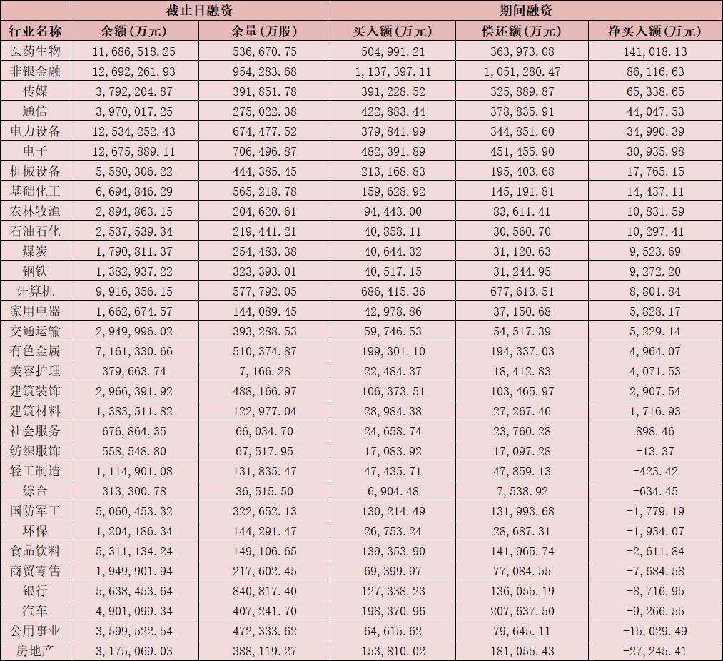 表:8月7日申萬(wàn)一級(jí)行業(yè)兩融交易情況
