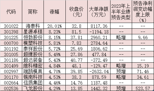 8月8日,汽車零部件板塊沖高回落,不過板塊內(nèi)多只概念股漲幅居前。其中,海泰科漲停,星源卓鎂、恒勃股份分別大漲8.23%、8.15%,模塑科技、泰祥股份、超捷股份、超達(dá)裝備等個股漲幅也均逾5%。