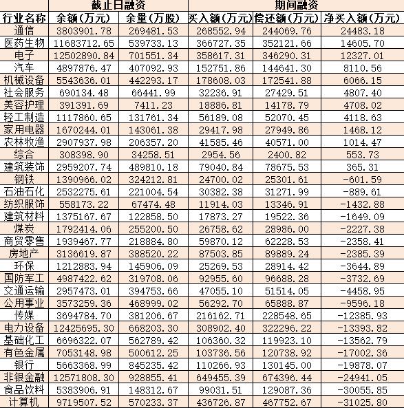 表:8月15日申萬一級行業(yè)兩融交易情況